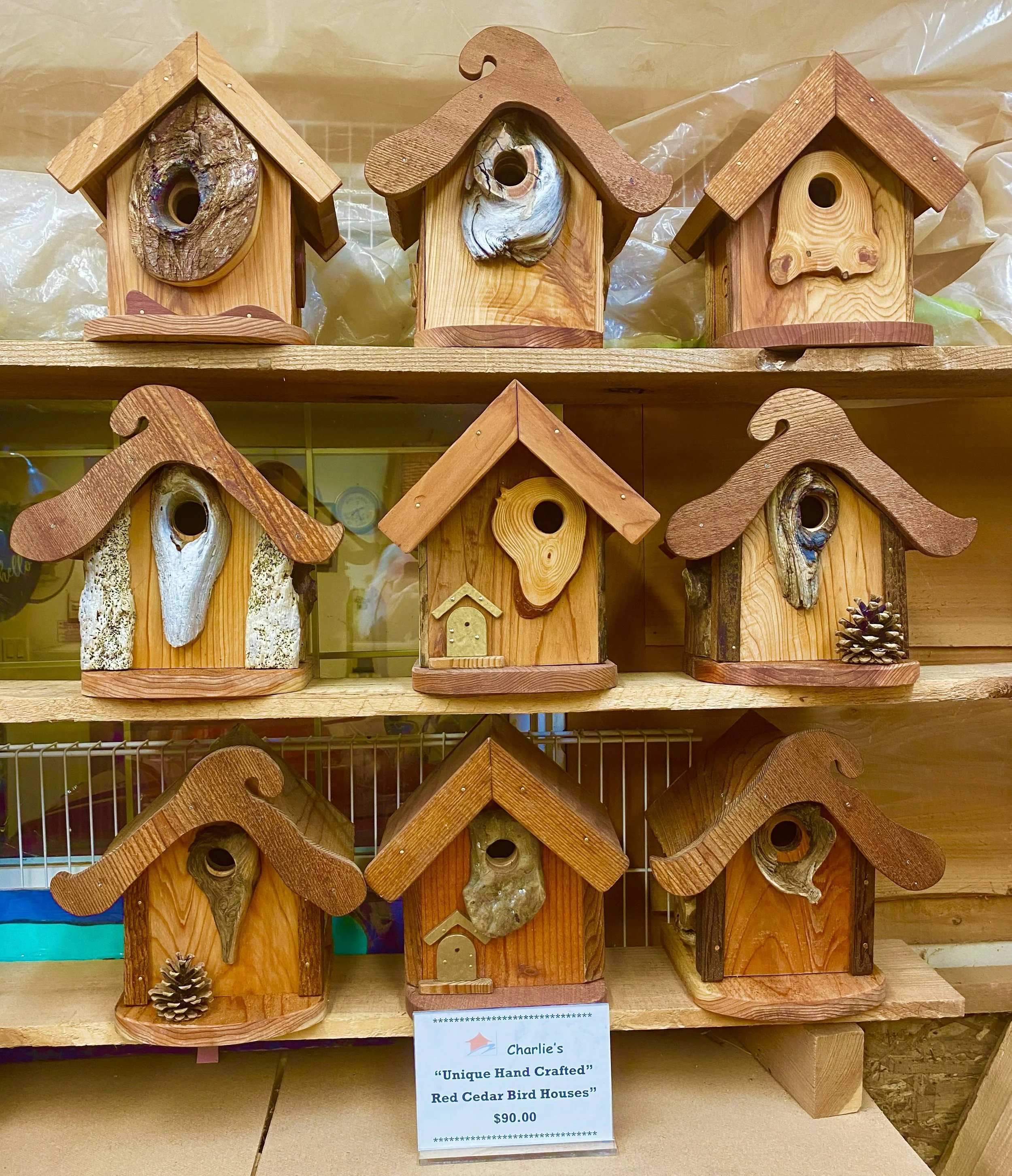 All Bird houses are $90 unless noted otherwise. All crafted using cedar material supplied locally by Gogo’s saw mill.